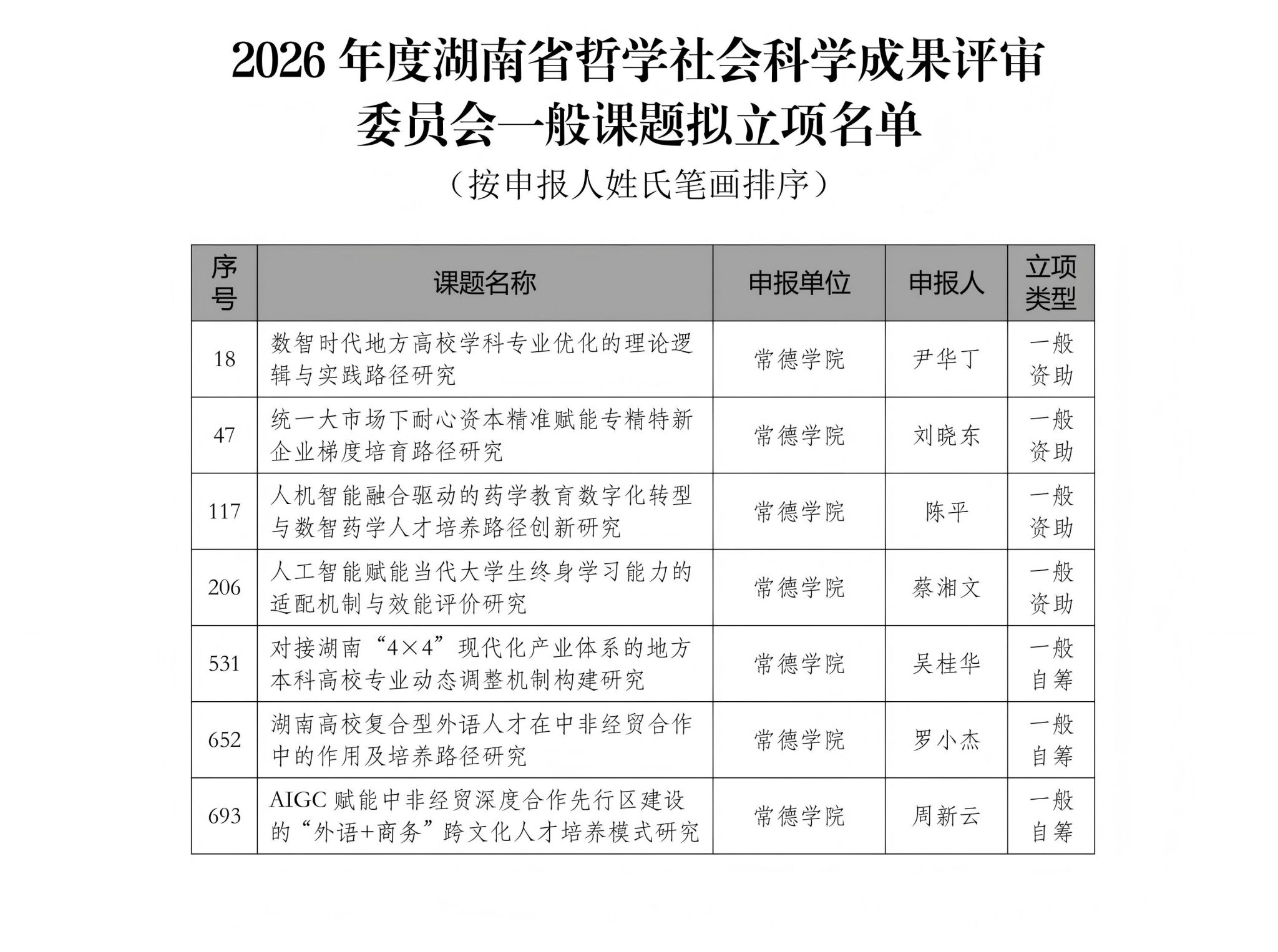 2026年1月5日,湖南省哲学社会科学成果评审委员会发布了《2026年度湖南省哲学社会科学成果评审委员会课题立项名单公示》。beat365英国官方网站获批7项评审委员会一般课题立项。