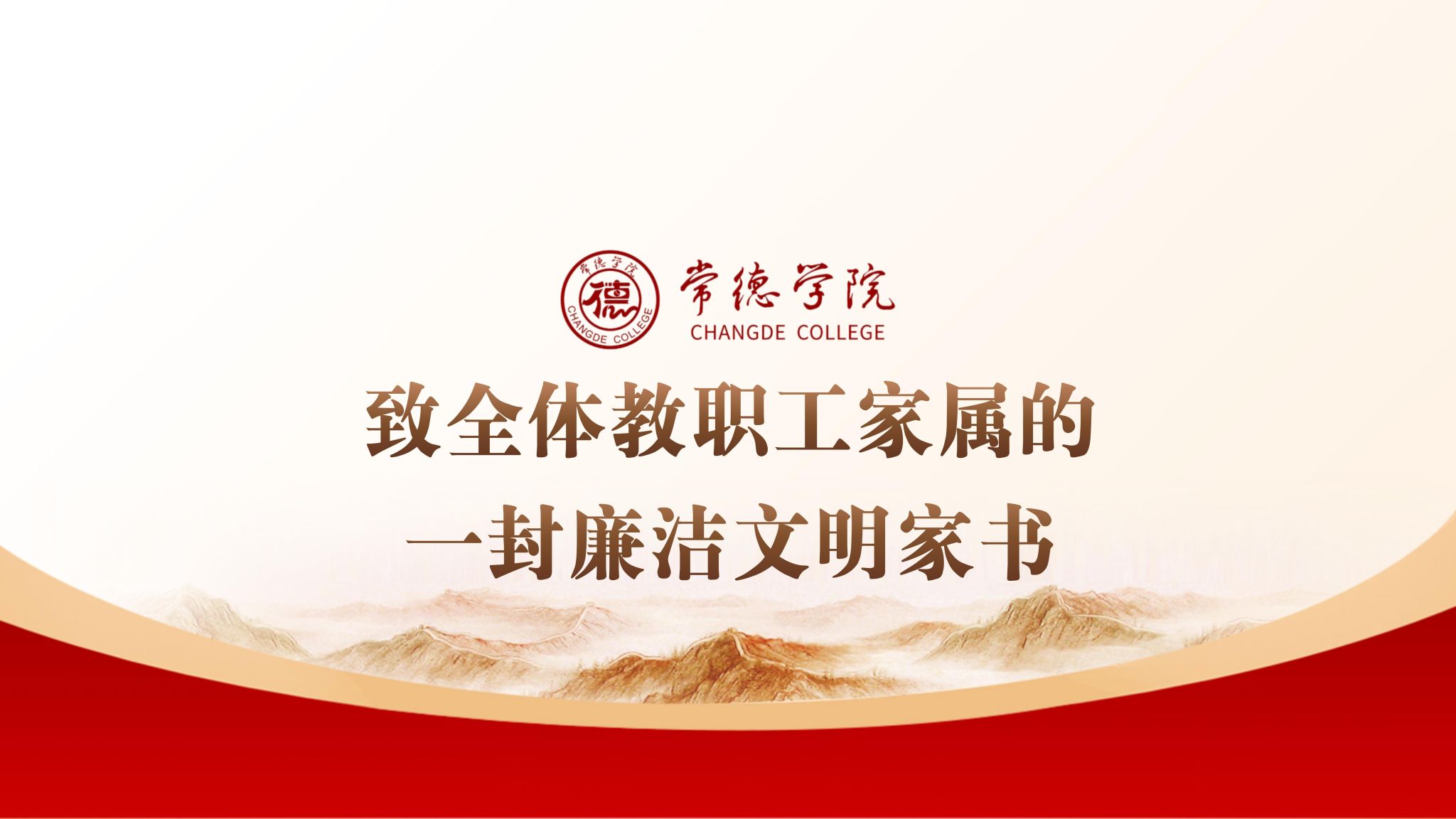 尊敬的教职工家属:您好!见字如晤,展信舒颜。首先,谨代表学校临时党委携全体教职工向您致以最诚挚的问候和最深切的感谢!感谢您长期以来对学校工作的默默支持,才使得我们的教职工能够心无旁骛地投身于教书育人的崇高事业,共同推动学校各项事业蓬勃发展。国无廉不安,家无廉不宁。beat365秉持“常德常新,惟精惟一”的校训,这不仅是对全体师生员工的期许,也期待能成为我们每个家庭涵养家风、砥砺品行的镜鉴。“常德常新”,于学校而言,...