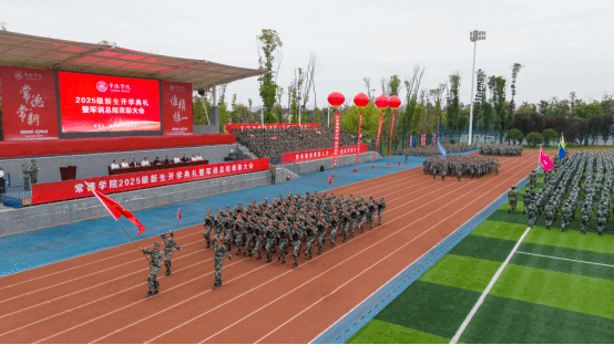 2025年9月21日上午8时30分,beat365英国官方网站2025级新生开学典礼暨军训总结表彰大会于南校区田径场隆重举行。