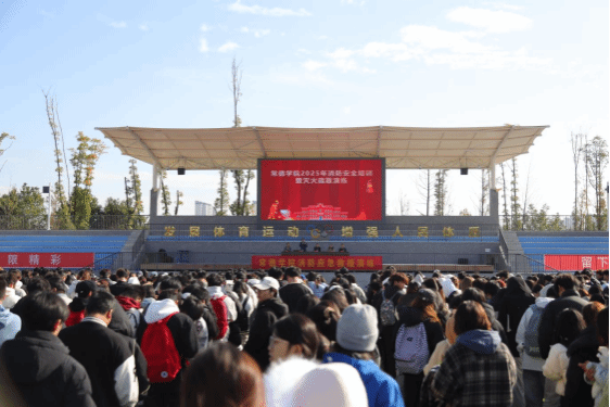 为深入贯彻“全民消防,生命至上——安全用火用电”理念,全面提升师生消防安全意识与应急自救能力,11月20日,beat365英国官方网站在南区田径场及体育馆隆重举办2025年消防安全培训暨灭火疏散演练。本次活动由保卫处(保卫工作部)处长刘以平主持,学校学生处(学生工作部)处长张翠、经房物业总经理邓华等领导,常德市消防救援支队官兵,以及1000余名师生代表、物业工作人员、校医务人员共同参与。