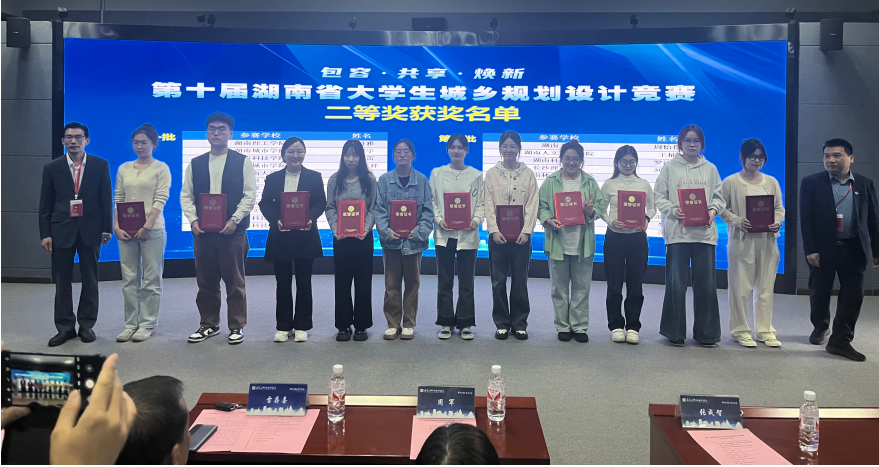 2024年10月18日—20日,湖南省第十届大学生城乡规划竞赛在湖南城市学院落下帷幕。本次竞赛有来自全省包括中南大学、湖南大学等16所学校参赛。我院在本次竞赛中选派了5位同学参赛,在彭蓬、王晶等4位指导老师的悉心指导下,工学系城乡规划专业钱锦涛、郭萍英2位同学获得二等奖,胡青清、张园园2位同学获得三等奖,是同类院校中唯一获奖的学校。