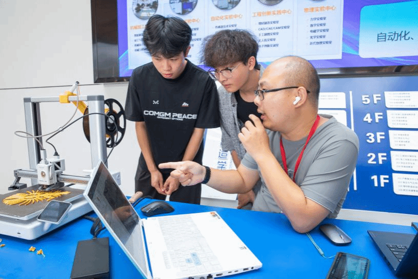 智能制造学院更将迎新点打造为一场科技迎新盛宴,展出工业无人机、机器狗、3D打印机等前沿设备,由老师现场讲解演示,让新生直观感受专业魅力,赢得广泛好评。