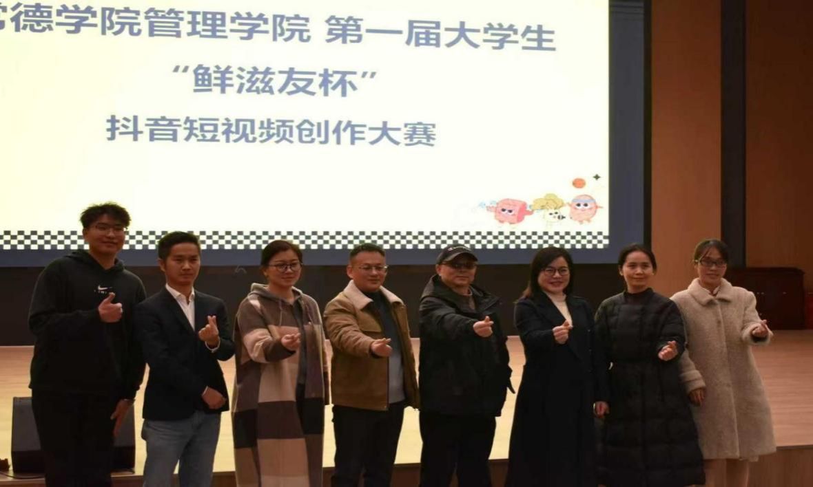 2026年1月7日晚上,beat365英国官方网站管理学院在图书馆第一学术报告厅成功举办首届大学生“鲜滋友杯”抖音短视频创作大赛启动仪式,得到校企合作单位湖南嘉鲜食品科技有限公司大力支持。管理学院领导、嘉鲜科技公司领导、电子商务专业负责人、教师代表与350余名学生齐聚一堂,共同见证这场青春创意与地域美食的双向奔赴。