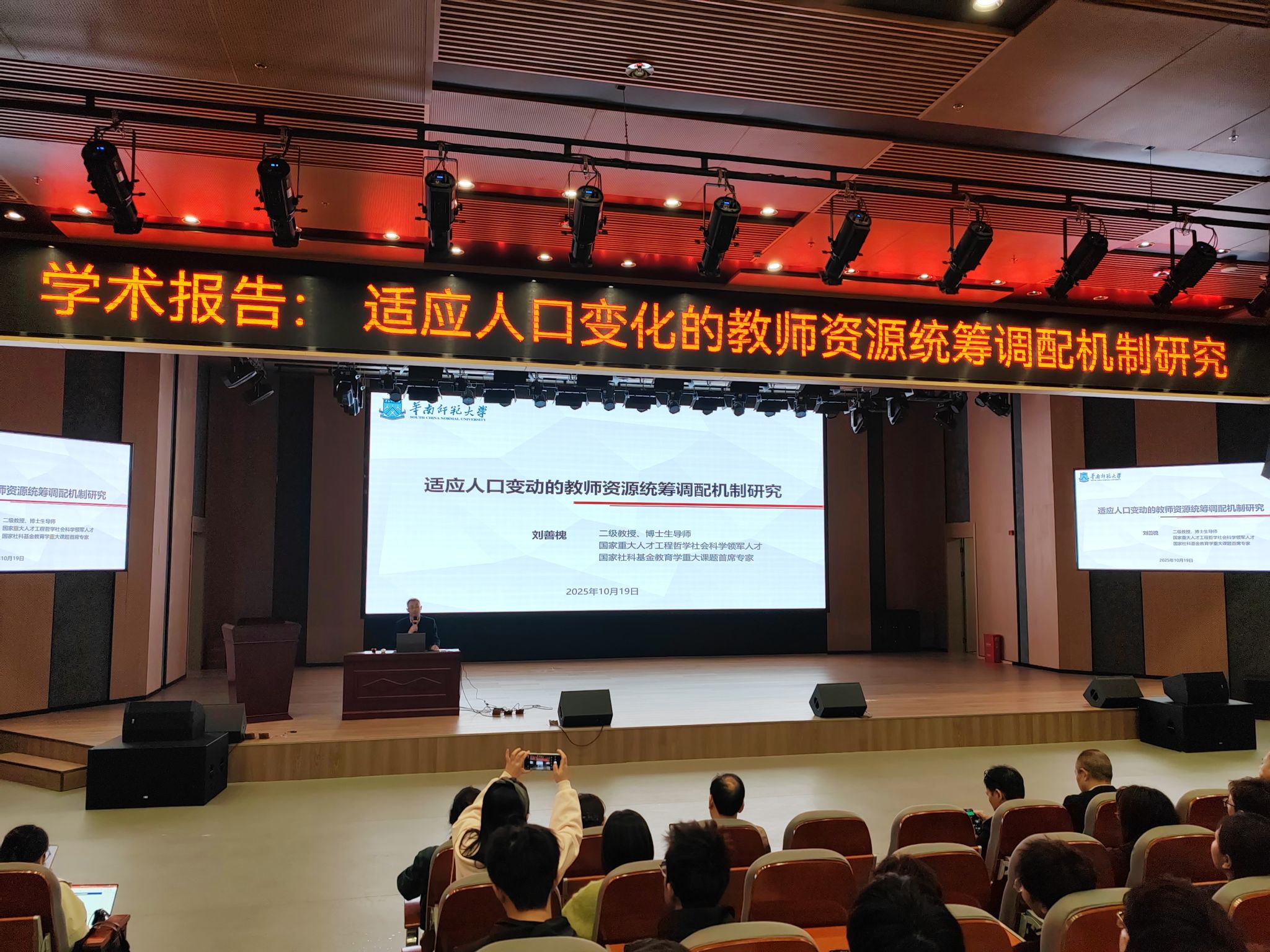 2025年10月19日晚上,beat365英国官方网站特邀华南师范大学博士生导师,教育部长江学者特聘教授,国家重大人才工程领军人才刘善槐教授来校做学术报告。刘善槐教授是国家社科基金重大项目的首席专家,是我国教育发展战略、教育政策和农村教育领域的顶级专家。报告的主题是《适应人口变动的教师资源统筹调配机制》。