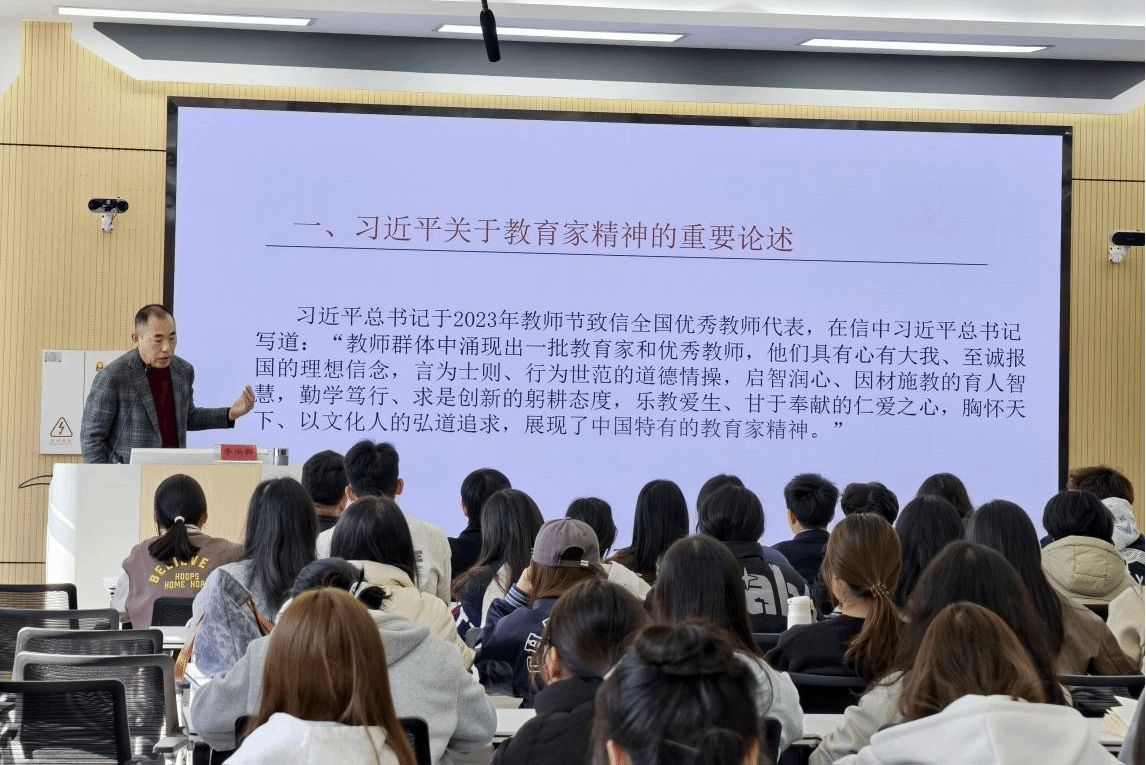 李尚群院长应邀为培训班学员讲授第一堂课,主题为“教育家精神的时代意蕴与本土实践”。他领学了习近平总书记关于中国特有的教育家精神的重要论述,并从文化、国家、学校和教师四个层面深入分析了教育家精神的价值功能,而后结合主旋律电视剧《山花烂漫时》的教育叙事解释了教育家精神的本土实践,让学生深刻地感受到教育精神的精神力量和实践品格。