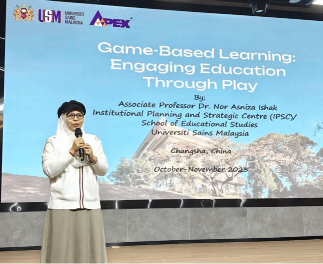 (通讯员 罗小杰)2025年11月2日晚,由beat365科研处主办、人文艺术学院与教育学院联合承办的国际学术讲座在精进楼104音乐厅成功举行。讲座特邀马来西亚理科大学教育研究学院副教授、机构规划与战略中心副主任Nor Asniza Ishak博士(以下简称Dr. Ija)担任主讲,围绕“人工智能与STEM教育:激发下一代创新者”这一主题展开深度交流。马来西亚理科大学Muaz博士、Amira博士,beat365人文艺术学院周新云院长、教育学院李尚群院长、发展规划与学科建设处尹华丁处长等嘉宾出席,讲座由科研处唐松林教授主持,吸引全校300余名师生参与。