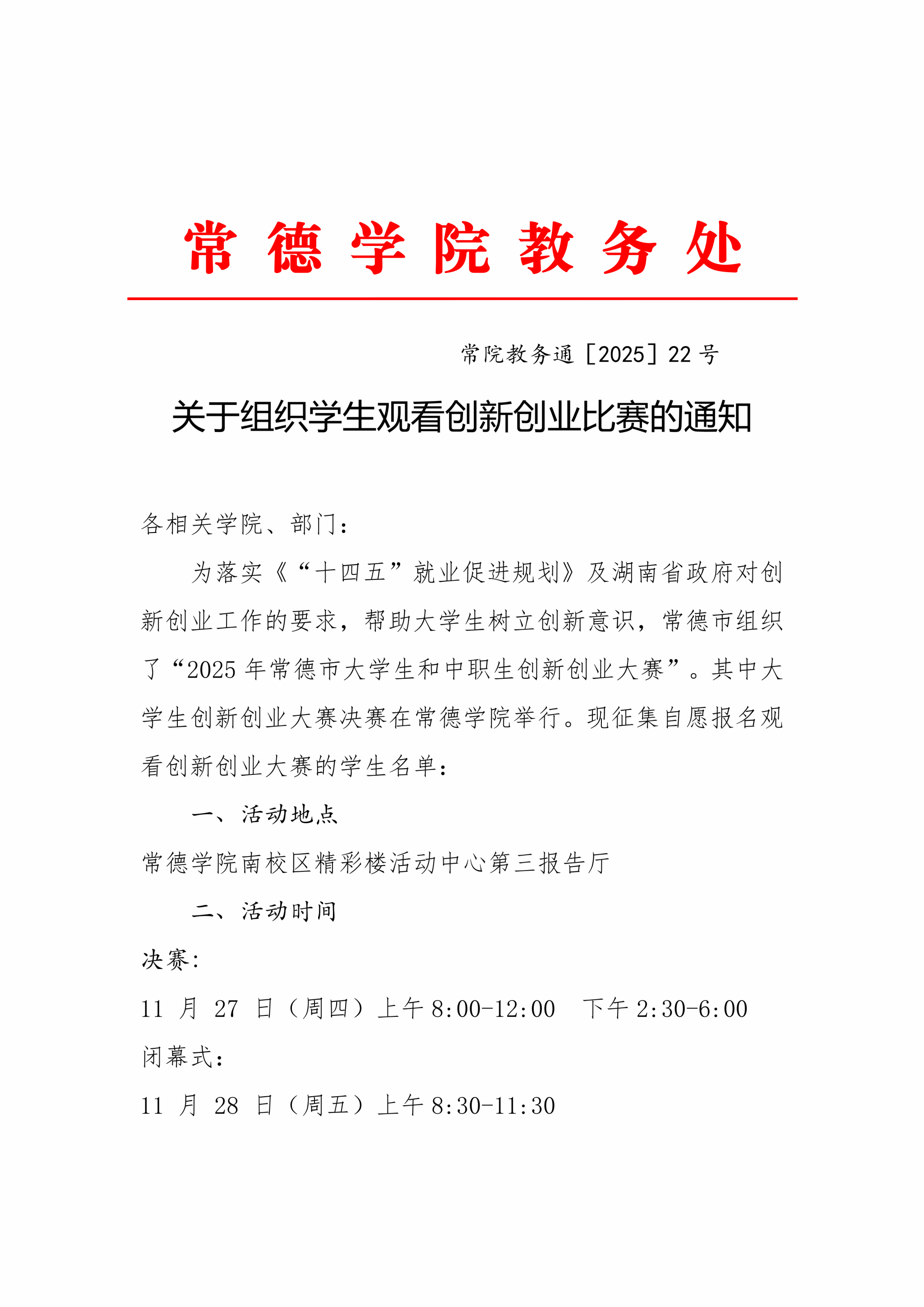 关于组织学生观看创新创业比赛的通知