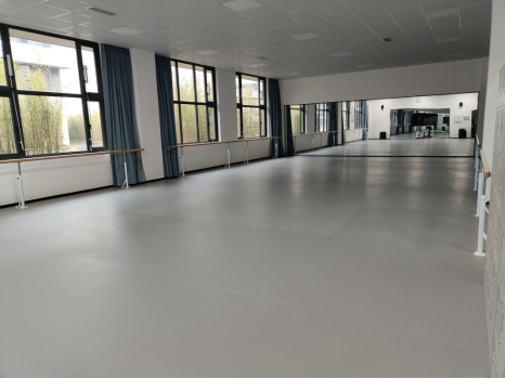 舞蹈房是音乐学等专业实验实训室,共2间,每间使用面积243平米,配备墙面镜、把杆、瑜伽砖、练功垫、专业音响、86寸液晶屏、储物柜、鞋架等设备设施。用于舞蹈教学、舞蹈形体训练、节目排练等实验实训项目。