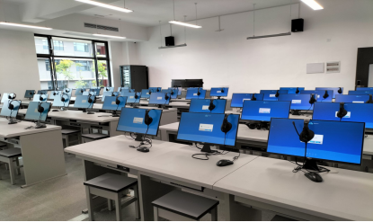 视听说实验室是语言类专业实验实训室,共5间,使用面积405平米,可同时容纳240人进行实验实训。配备语音云终端、云桌面虚拟化服务软件、普通话教学软件、网络课堂多媒体教学软件、教师主机等软硬件设备。主要适用于英语视听说、英语语音、普通话、演讲与口才、英语口语、学术写作与研究方法、言语理解与表达等实验实训项目。