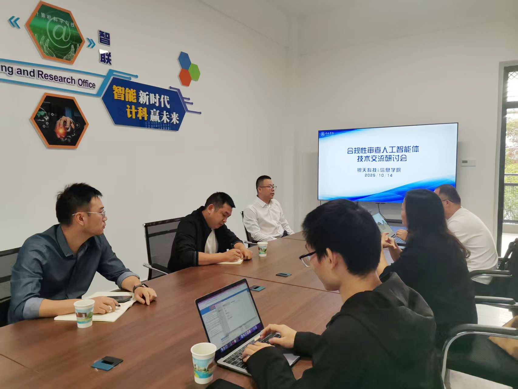 2025年10月15日,信息学院与银天智能科技有限公司在精慧楼213会议室成功举办“合规性审查人工智能体技术交流研讨会”。会议由信息学院卓志宏院长主持,学院文超群博士、易鑫博士、付玺博士、周南副教授,以及银天科技技术总监黎海兵、经理张霞、算法工程师杨淼等共同参与。图1 会议现场图2 双方代表就AI合规审查技术进行深入交流银天科技技术总监黎海兵介绍了公司发展历程与核心技术能力,表示正积极布局AI在政务合规审查场景的应用。...