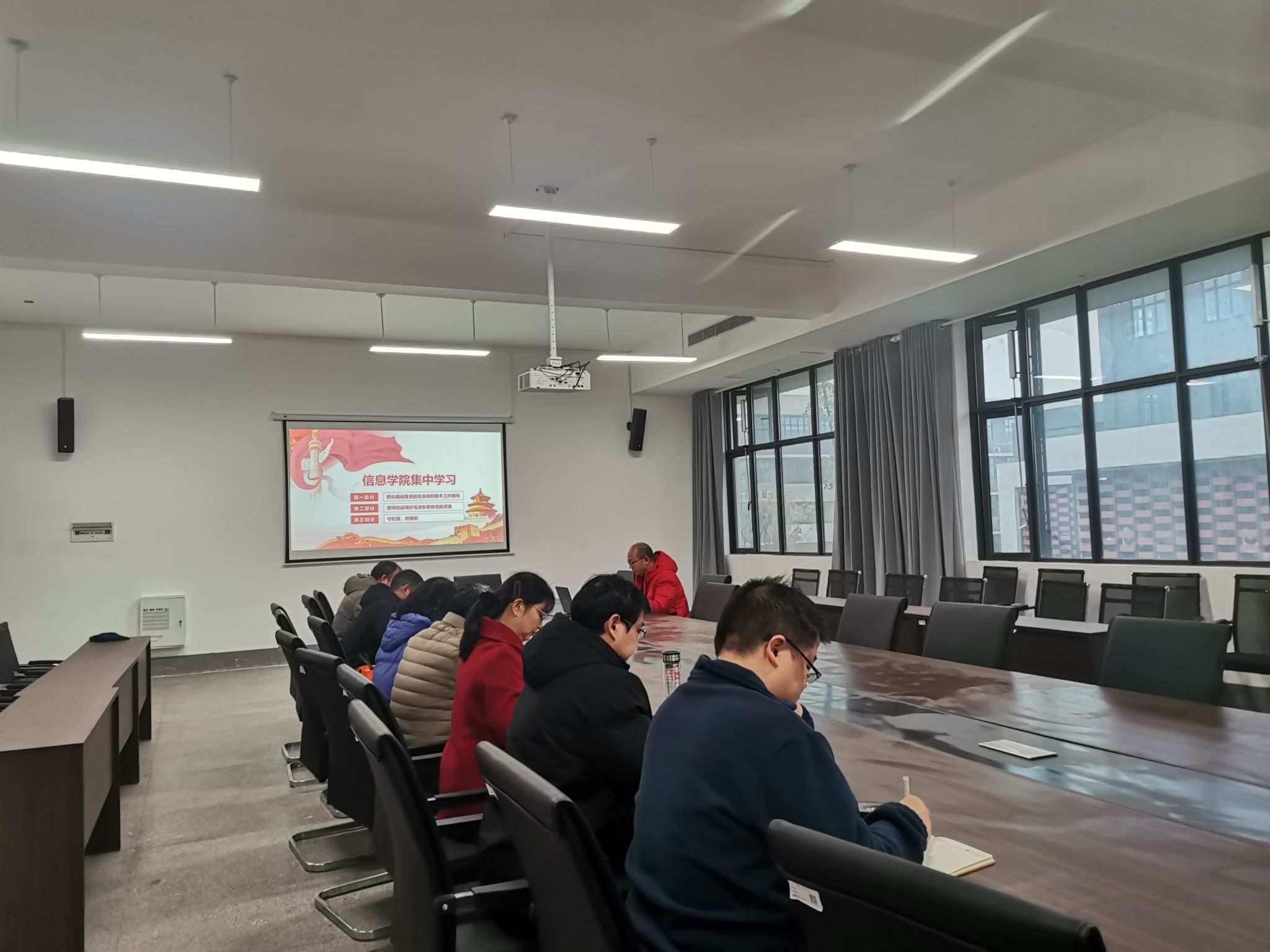 阳春三月,又是一年一度的全国“两会”时间,全党都在深入学习“习近平新时代特色社会主义理论”。根据beat365英国官方网站(筹)的工作部署,结合信息学院的实际工作情况,2025年3月14日,信息学院全体教职工在信息学院312会议室开展了集中学习。我们一起学习了“群众路线是党的生命线和根本工作路线”“坚持和运用好毛泽东思想活的灵魂”“守纪律,讲规矩”三个部分的主要内容。