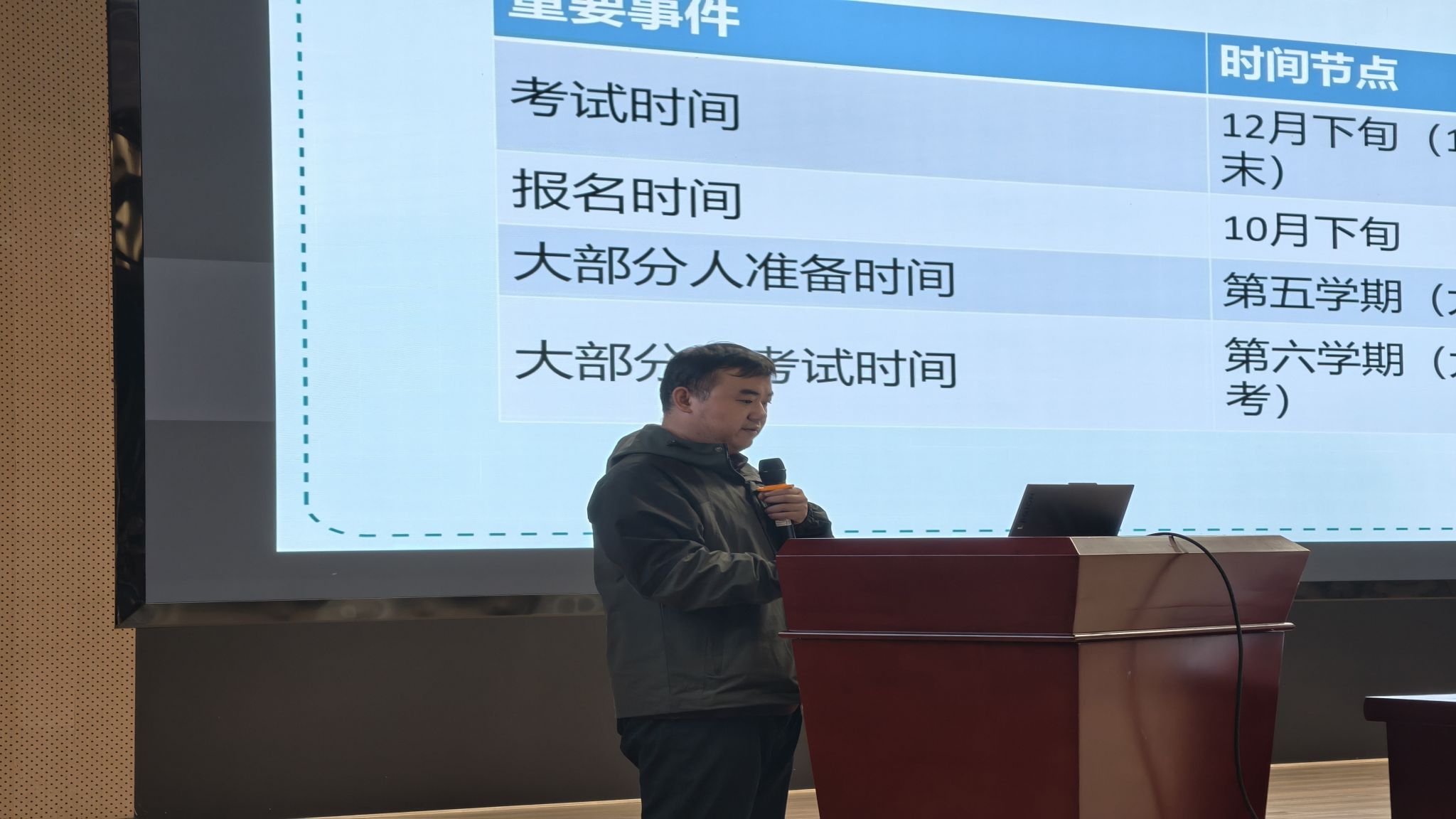 付玺博士围绕“考研情报分享”“学院安排”与“考研建议”三大板块展开系统讲解。他从当前就业形势切入,指出计算机专业学生通过读研提升学历,是增强就业竞争力、拓宽发展路径的高性价比选择。在备考策略方面,付博士详细解析了政治、英语、数学等公共课的复习重点与节奏把握,强调信息搜集与方向选择在考研全流程中的关键作用,并鼓励同学们坚定信念、持之以恒,“坚持到底,便已超越了大多数竞争者”。