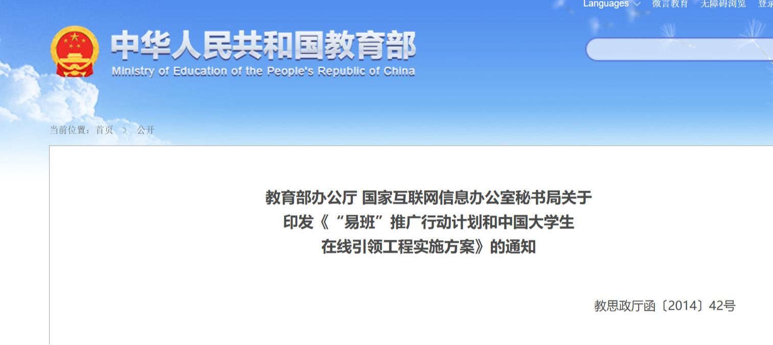 教育部办公厅 国家互联网信息办公室秘书局关于 印发《“易班”推广行动计划和中国大学生 在线引领工程实施方案》的通知