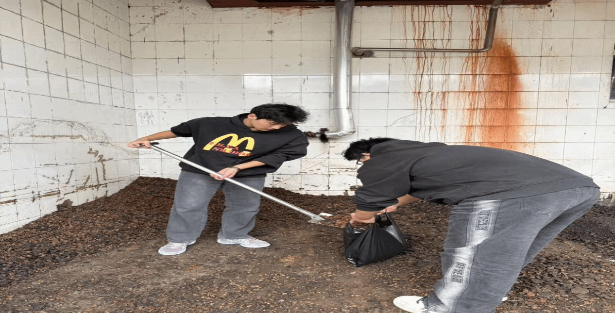 调研过程中,小组成员系统掌握中药生产全流程,并聚焦产业末端核心难题。他们全程佩戴防护手套,在生产线末端严格遵循操作规程,协助工人完成中药渣集中接收、规整装袋及初步转运等工作,以躬身实践为双创项目积累了宝贵一手数据,也深化了对专业知识的应用认知。