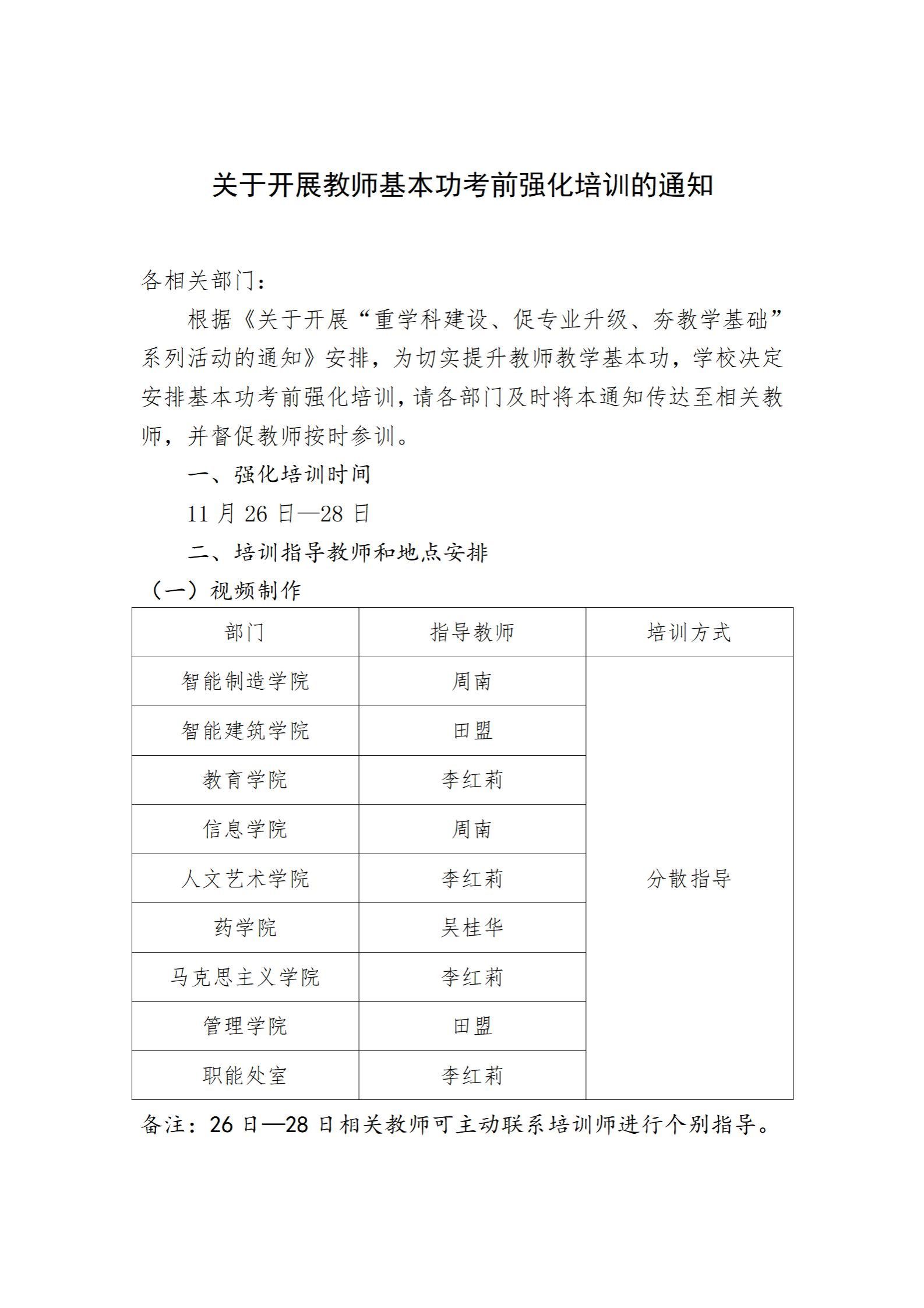 关于开展教师基本功考前强化培训的通知