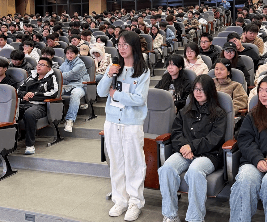 讲座还深入探讨了广度和深度的“T字型”复合能力的构建,倡导学生既要拓展跨界视野、提升综合素养,也要在专业领域深耕而不浮于表面。此外,夏彪老师还分享了“态度决定命运、气度决定格局、底蕴厚度决定事业高度”的人生智慧,鼓励学生“仰望星空,脚踏实地”,以专注的信念与持续的积累迎接未来的挑战。